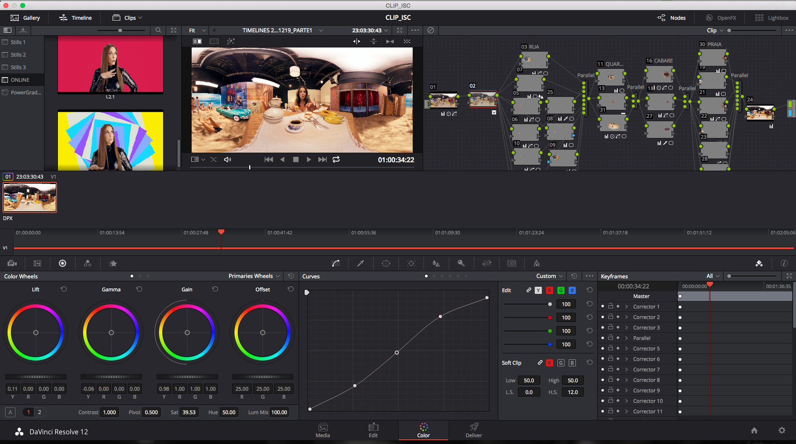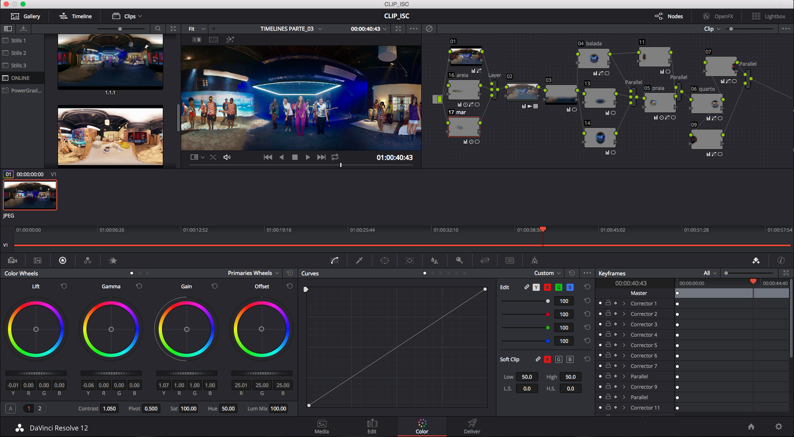 O DaVinci Resolve Studio também ajudou a O2 Pós na hora de equalizar as imagens das quatro câmeras. A funcionalidade “Color Match”, permite que utilizemos uma cartela de cor na filmagem e o software automaticamente usa essa informação como referência para equilibrar as câmeras, permitindo que todos os ângulos do video pudessem ser emendados na hora da geração do video 360º sem que a diferença entre as cameras fosse notada.